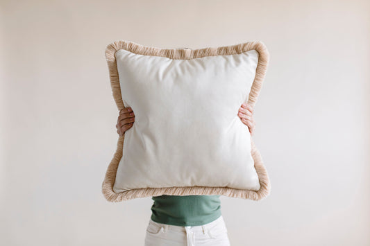 Dekoracyjna poduszka z frędzlami (kremowa/ecru)
