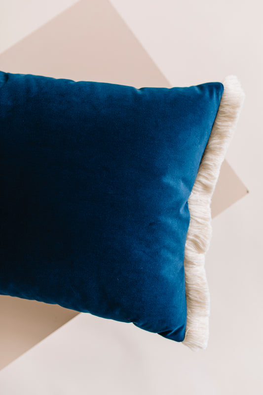 Dekoracyjna prostokątna poduszka z frędzlami, granatowa