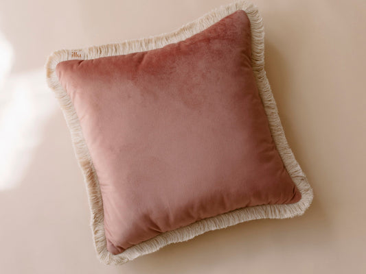 Dekoracyjna poduszka z frędzlami (pastelowy róź)