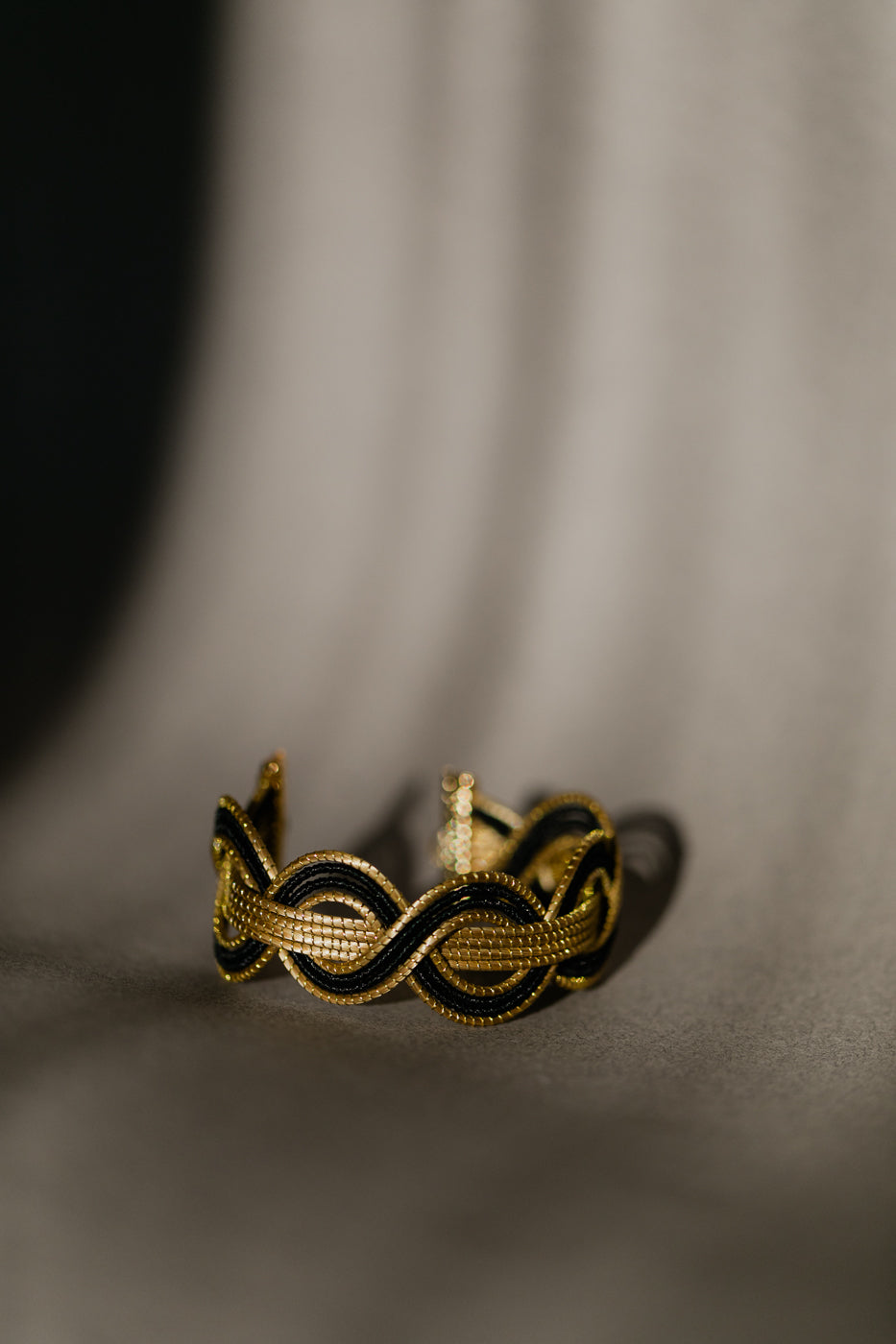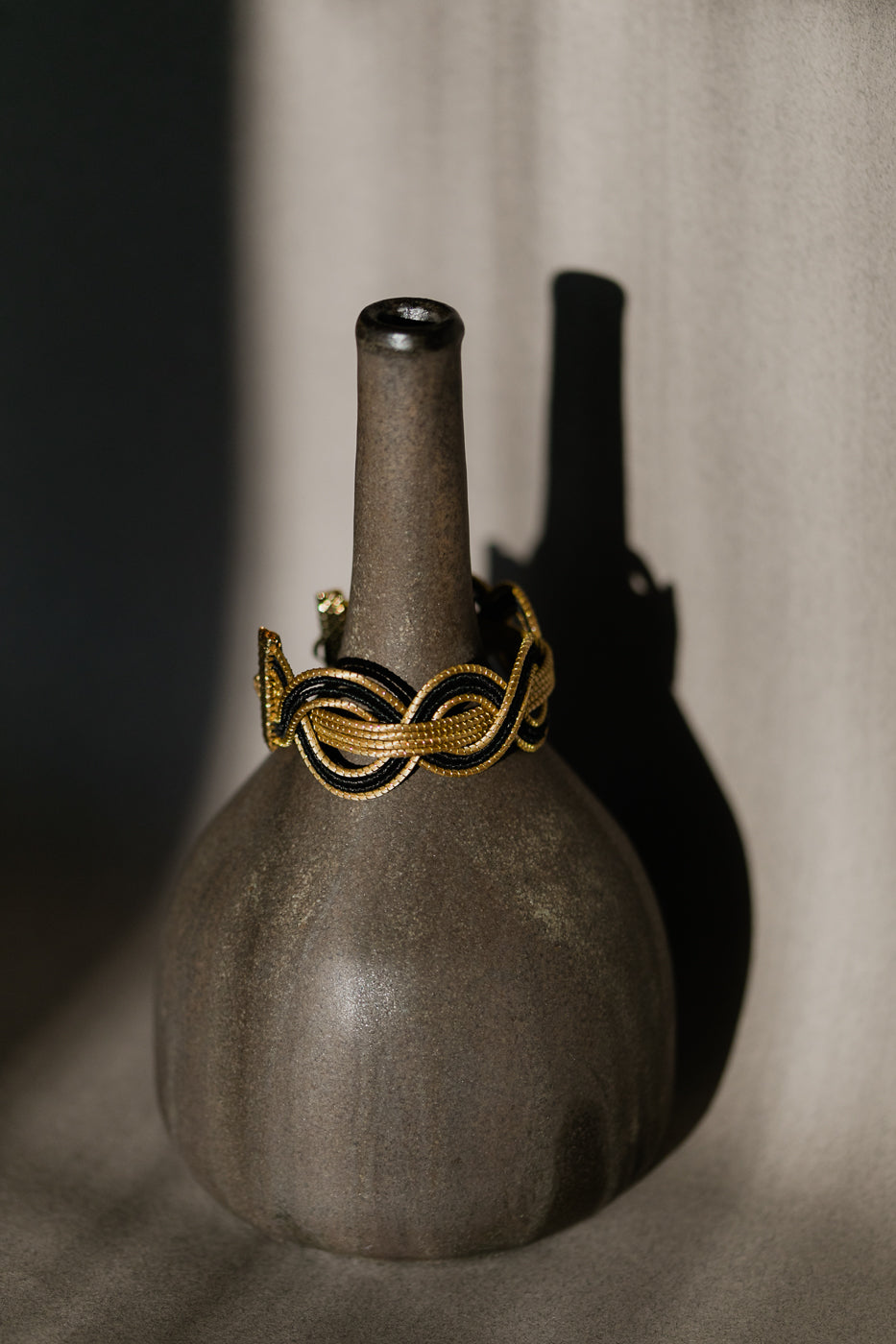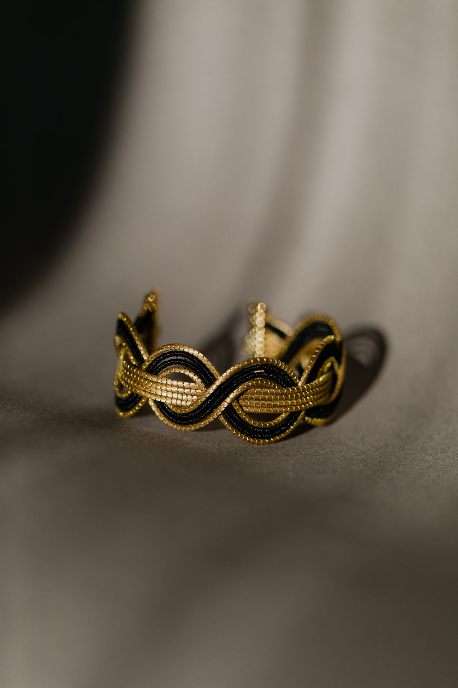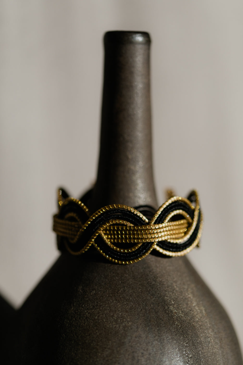 Dwukolorowa bransoletka ze złotej trawy, czarno-złote rękodzieło
