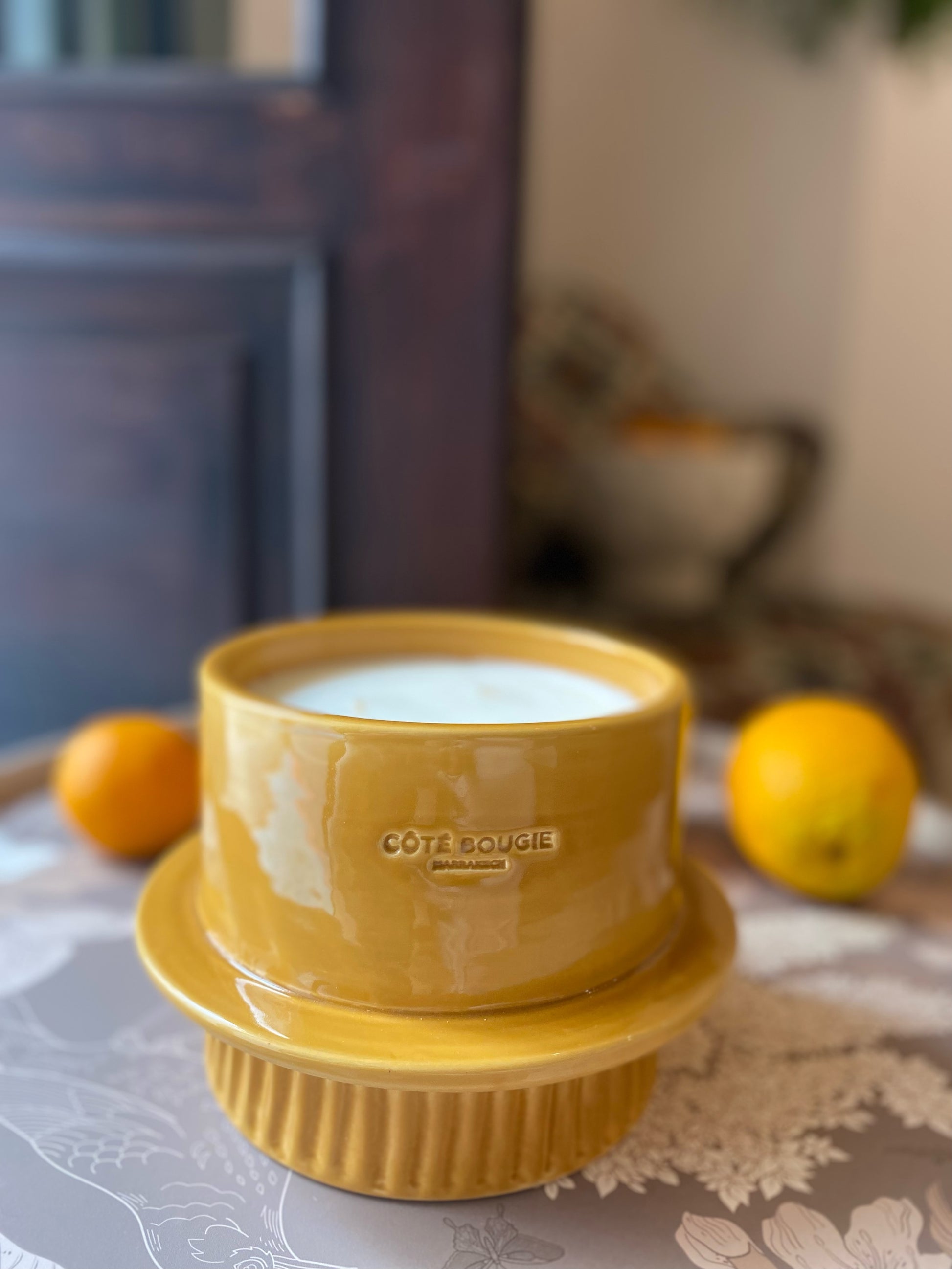 Świeca sojowa w szafranowej ceramicznej osłonce