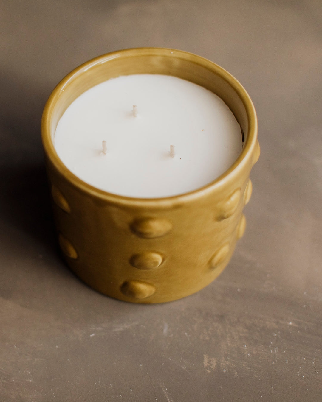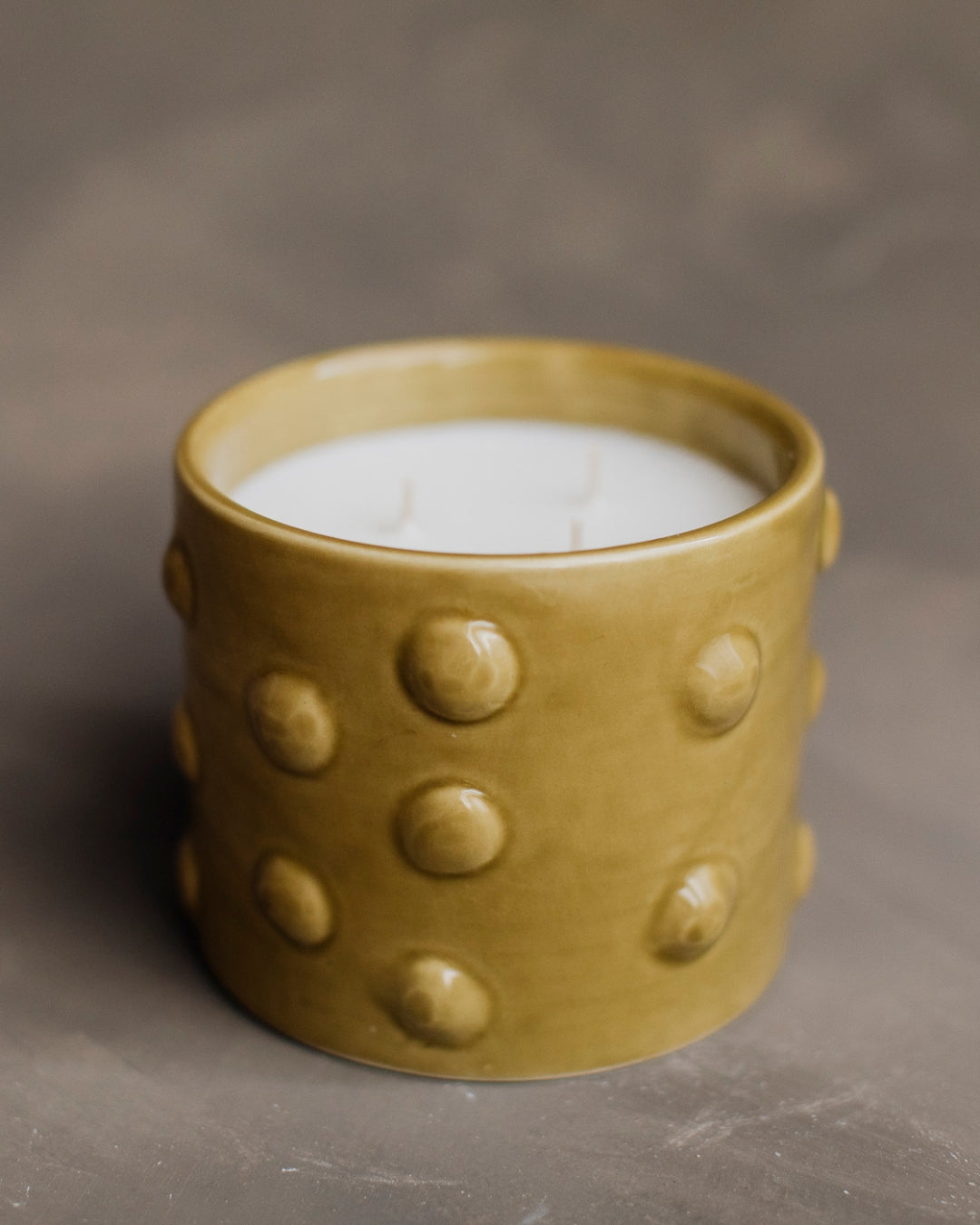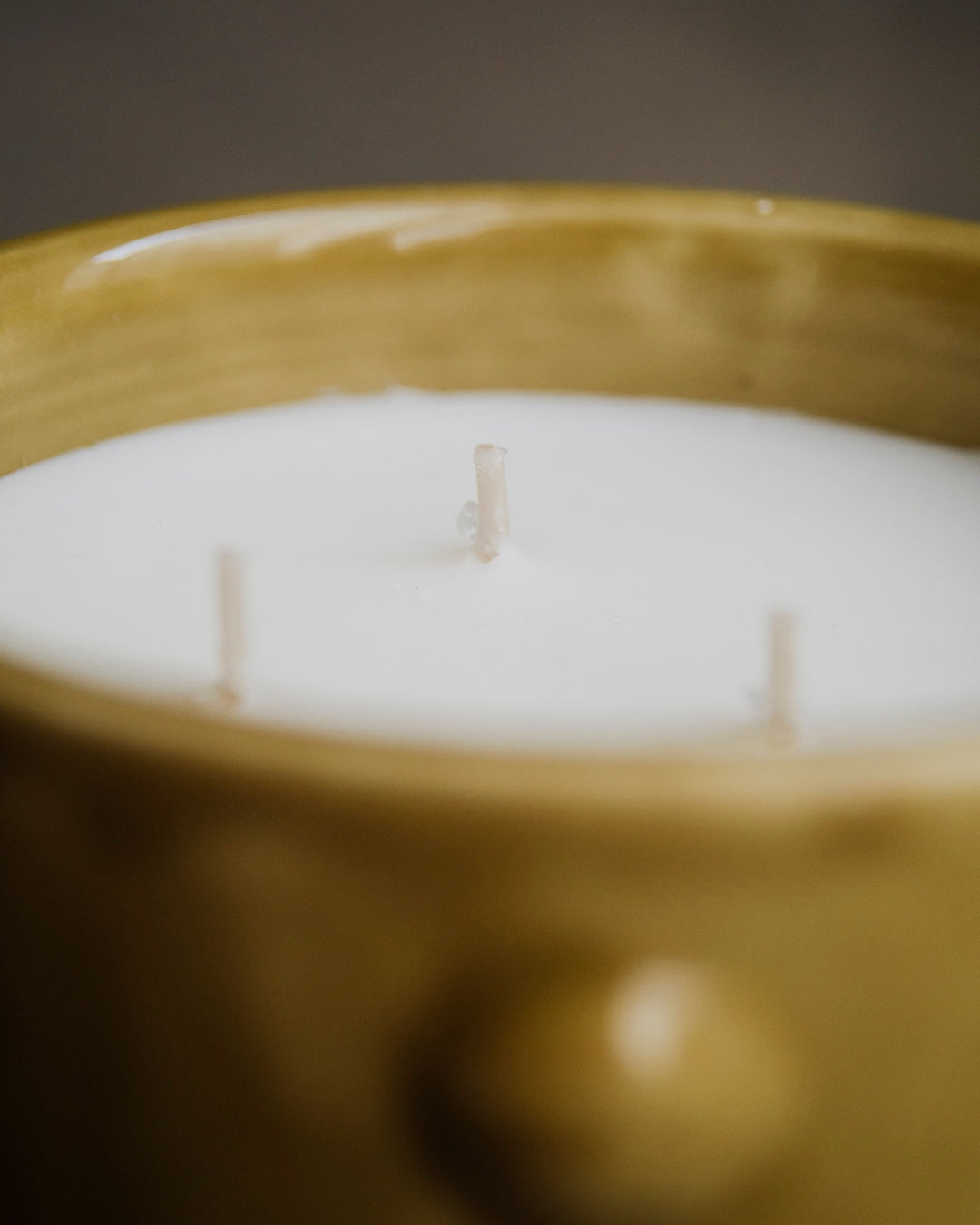 Świeca sojowa w ceramicznej, oliwkowej osłonce