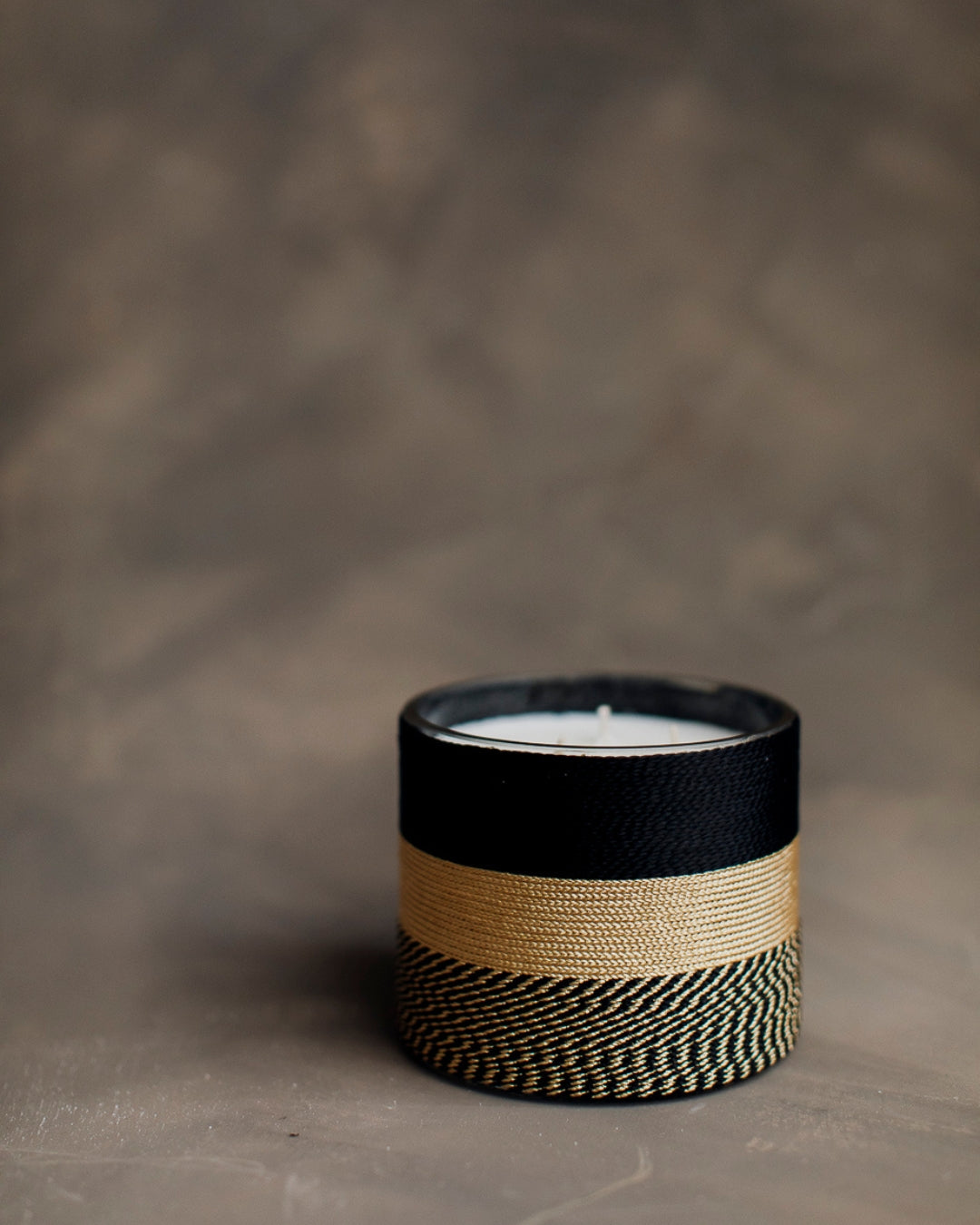 Świeca sojowa w osłonce z jedwabną nicią.