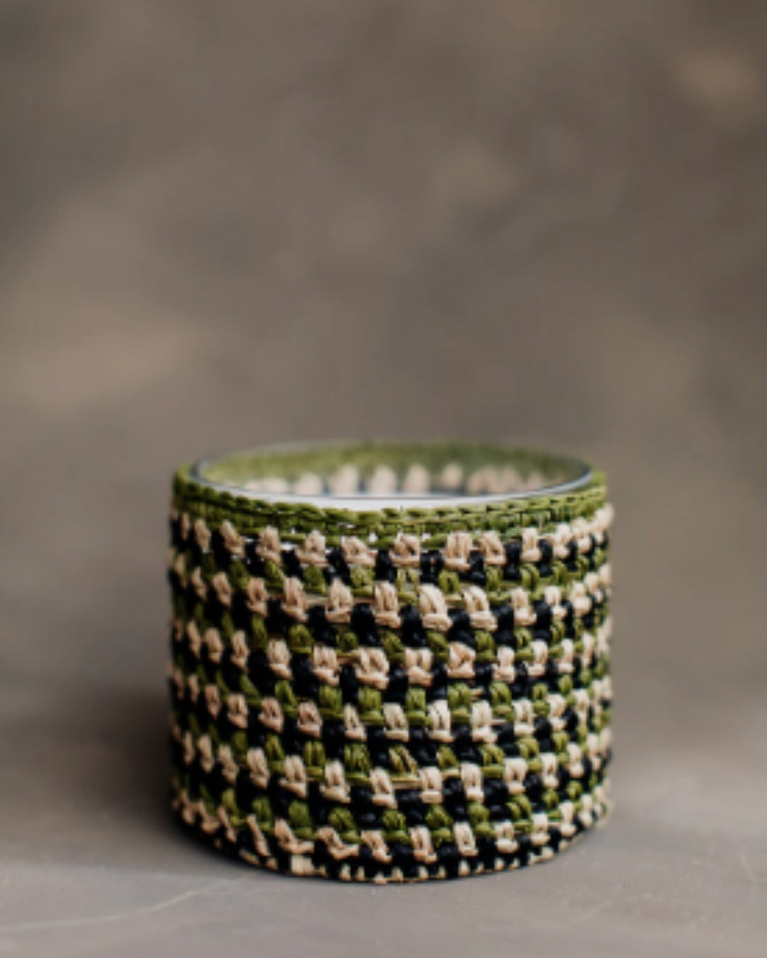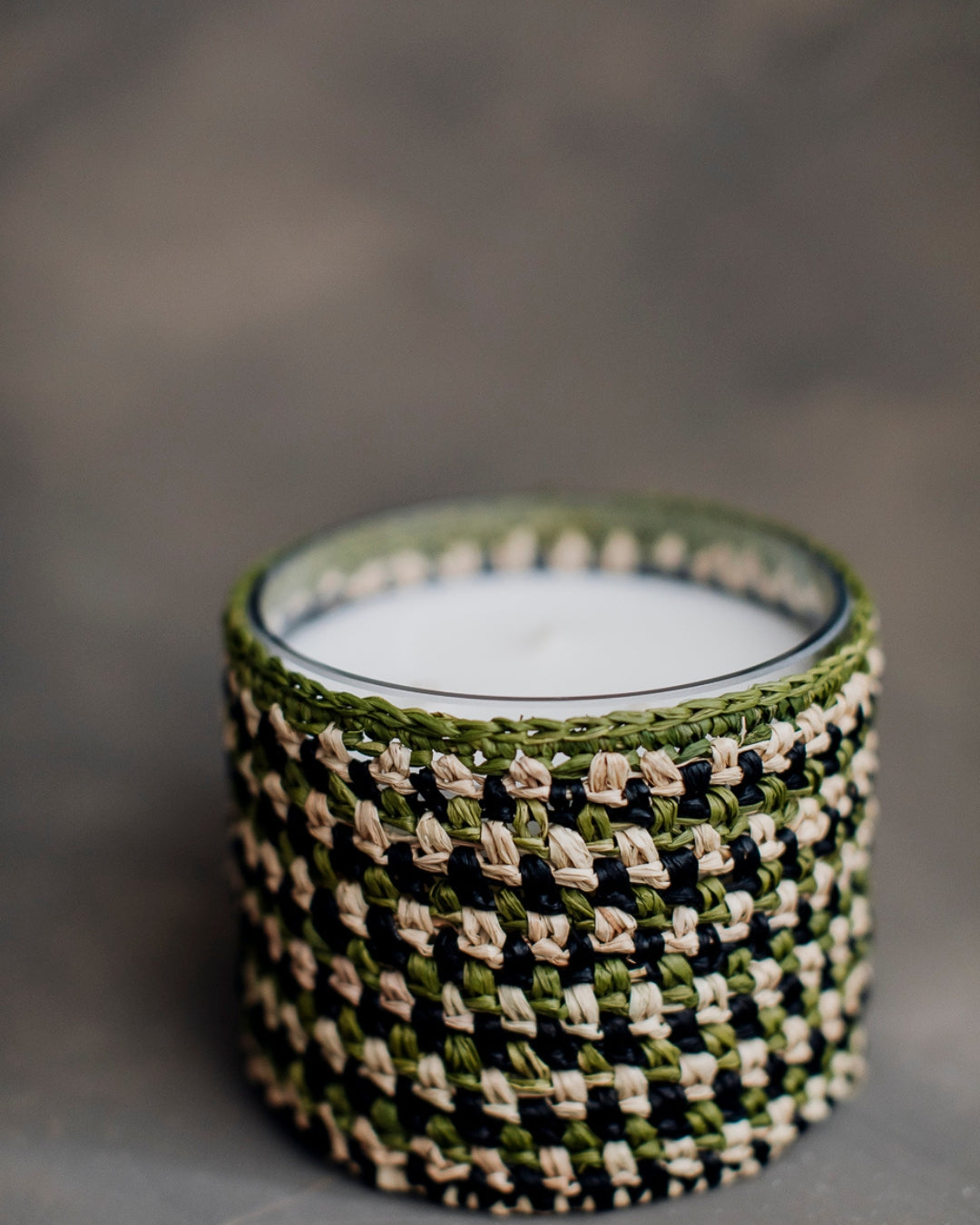 Świeca sojowa w osłonce z rafii.